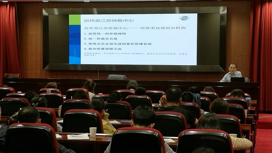 2018年4月3日,南京市贸促会组织了会员企业法律培训班。贸仲委江苏仲裁中心副秘书长汤寅宏应邀参加并为培训班作了题为“国际贸易和投资争议最佳解决途径--商事仲裁”的专题演讲。